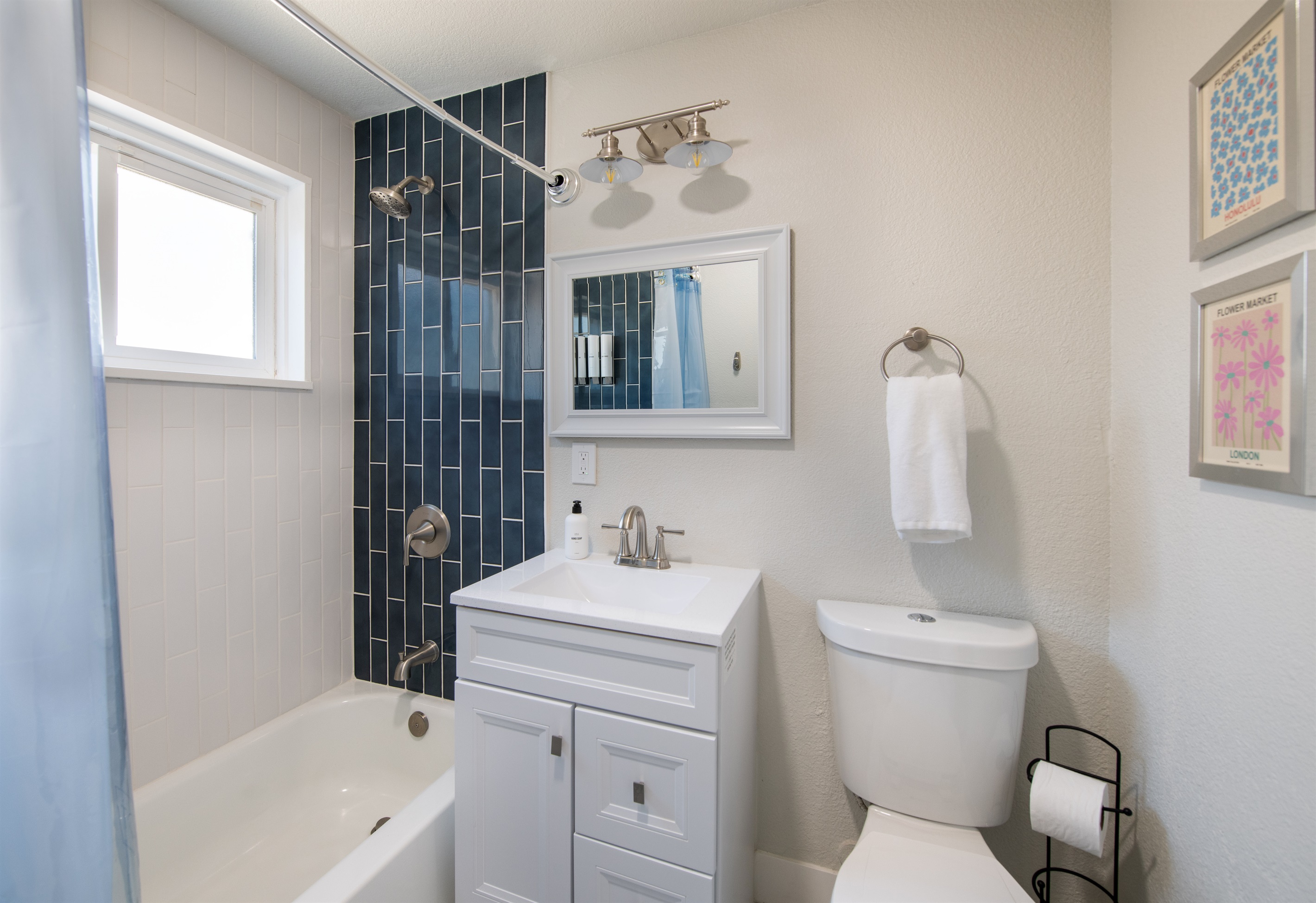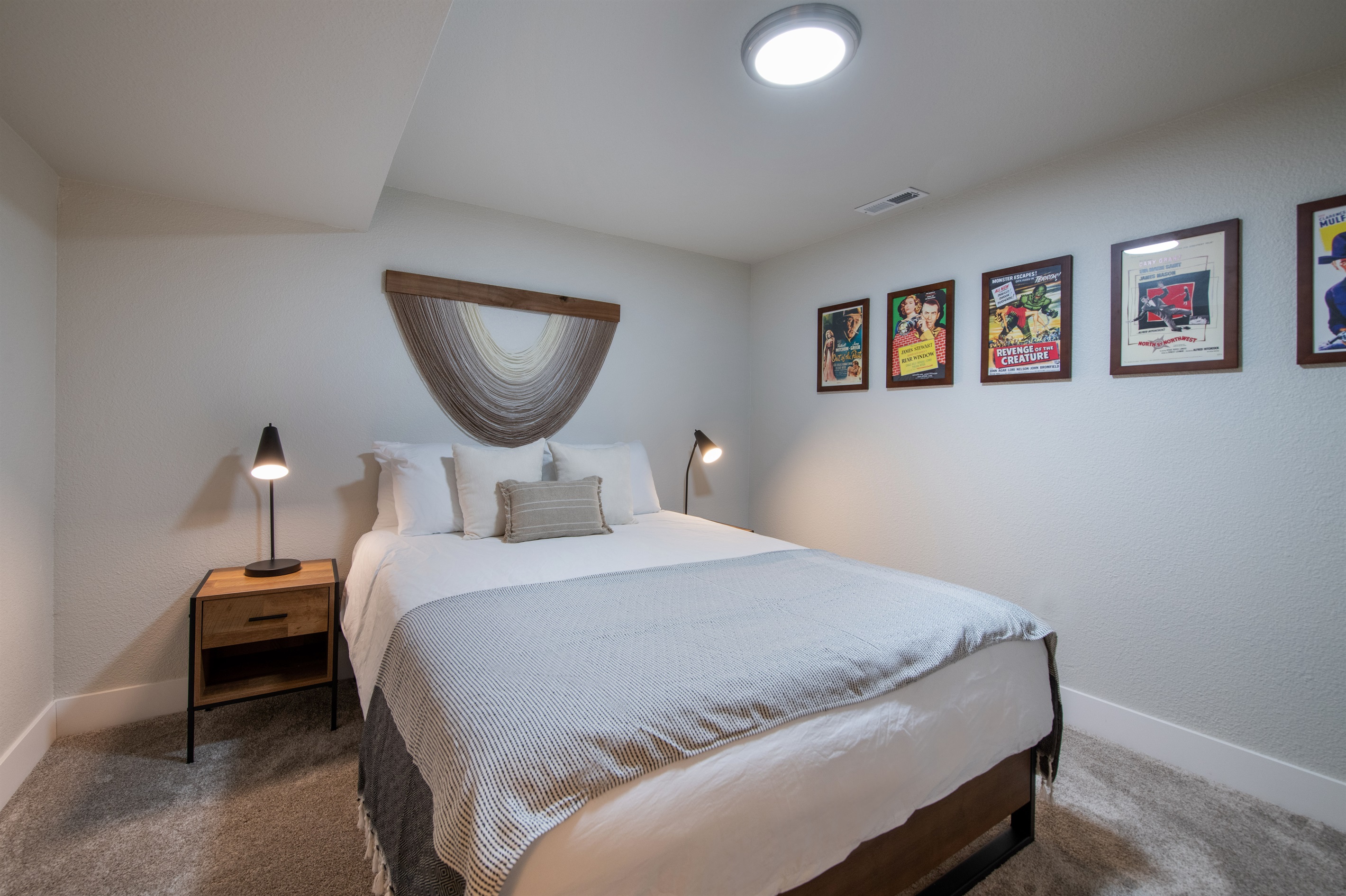 Your group's base camp in Denver: a 5-bedroom corner-lot house with a handcrafted cedar hot tub, game room with a full pool table, Pop-A-Shot basketball arcade game, and darts - plus a large fenced front yard with a lawn, and a big back patio with lounge furniture to unwind by the hot tub. The house is centrally located and just a short drive from the restaurants and bars of the Highlands, Berkeley (Tennyson St), and RiNo. Red Rocks Amphitheatre is about 20-25 minutes out, Boulder is only 30 minutes away, and I-70 access is a few miles away for those mountain day trips.