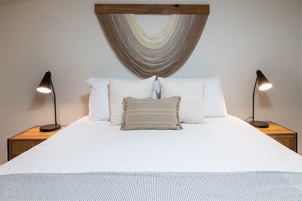 Spacious and well appointed bedroom with queen nectar ultra plush mattress and high end linens/sheets