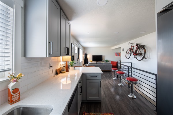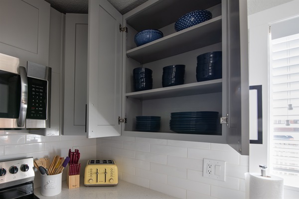 Full appointed and stocked kitchen with utensils and cooking tools