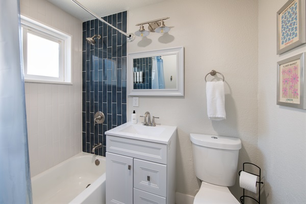 Another full sized and spacious bathroom, on lower level - offering great convenience for big groups!